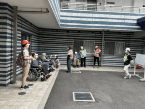2025年10月7日(火)13:45~ 友愛荘と町内会で合同防災訓練をしました。 参加者は会長代行・防災安全担当者3名でした。 利用者の部屋から出火したと想定です。初期消火が失敗し、利用者が車イスで避難し、町内会防災安全担当者に引き渡し、救護所まで搬送する訓練でした。 FacebookXBlueskyCopy
